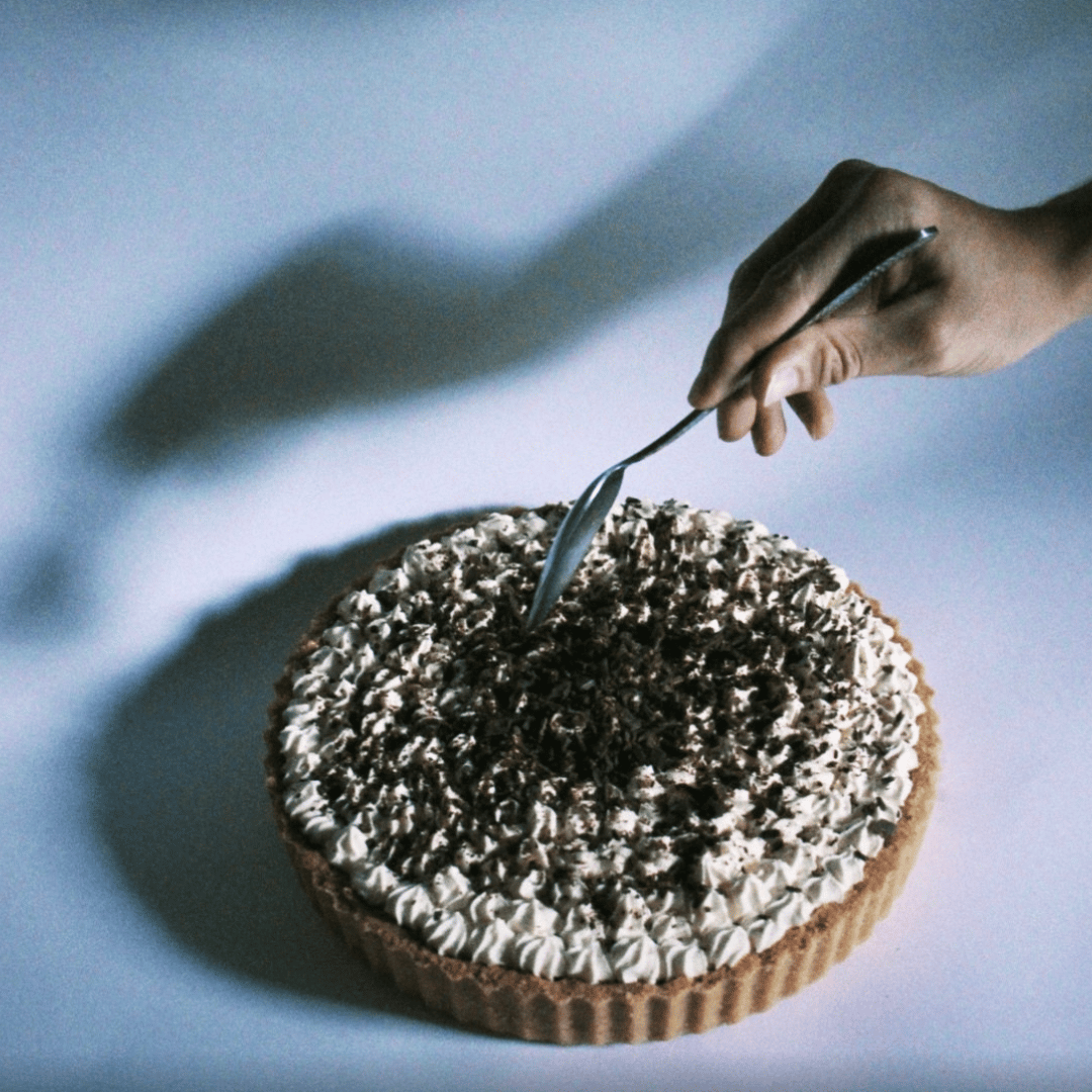 The perfect crowd pleaser - smooth, gooey dulce de leche, fresh bananas, and fluffy whipped cream, all sitting in a biscuity tart shell.